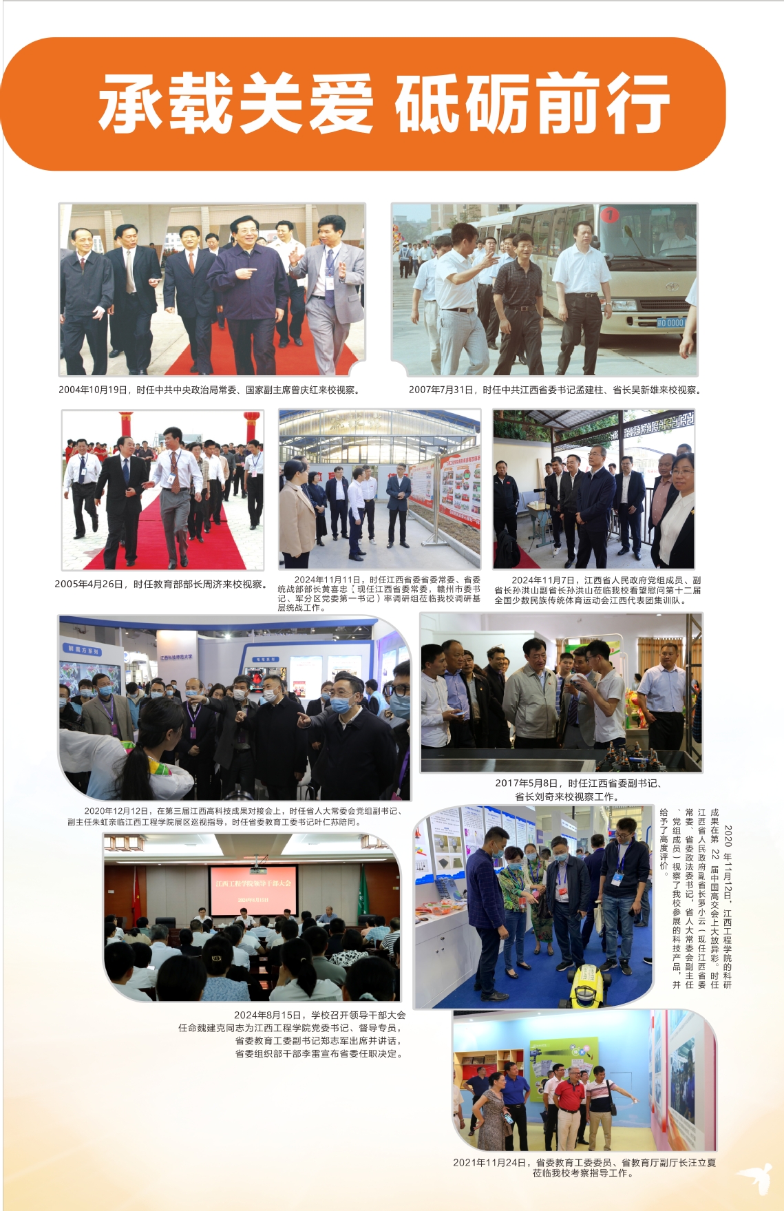 江西工程學(xué)院在國家、省、市領(lǐng)導(dǎo)的關(guān)心和支持下,不斷茁壯成長。學(xué)院始終堅(jiān)持以馬克思列寧主義、毛澤東思想、鄧小平理論、“三個(gè)代表”重要思想、科學(xué)發(fā)展觀、習(xí)近平新時(shí)代中國特色社會(huì)主義思想為指導(dǎo),堅(jiān)持社會(huì)主義辦學(xué)方向,與時(shí)俱進(jìn),開拓創(chuàng)新,使學(xué)院各項(xiàng)工作取得了顯著成績。42年來,走出了一條在小城市創(chuàng)辦大學(xué)校,突破小區(qū)域、輻射大中國的成功之路。