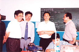 2005年4月26日教育部部長周濟(jì)、副部長吳啟迪在楊名權(quán)院長、余振華副院長的陪同下 視察我院